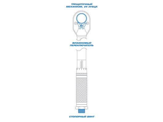 - Трещоточный механизм: 24 зубца