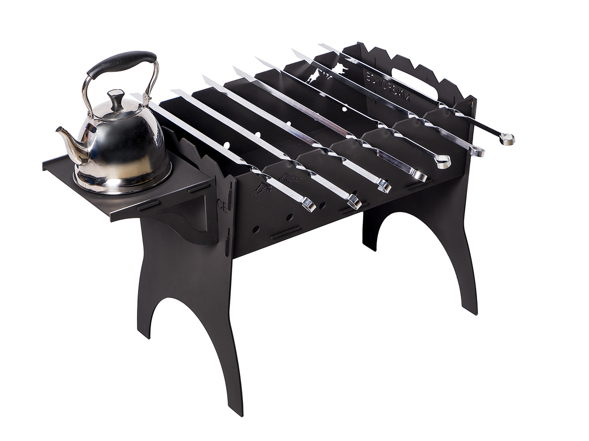 - Удобная конструкция с подставкой под чайник позволяет быть мангалу компактным и мобильным - Вы можете взять его с собой на природу, кемпинг или легко перемещать его на своём участке.