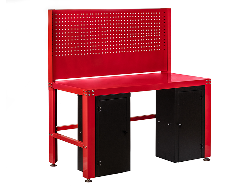 Металлические слесарные верстаки предназначены для удобной организации рабочего места на производстве, в учебных заведениях, мастерских и гаражах. Верстак с вертикальной перфорацией и двумя тумбами в комплекте.