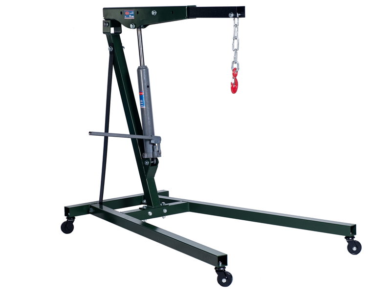 Представленный гидравлический кран имеет максимальную грузоподъемность 1.5 тонны. Благодаря складному механизму агрегат имеется возможность сложить, после чего он не будет занимать много места. Главным предназначением гидравлического крана является подъем и перемещение (благодаря наличию вмонтированных колесиков) грузов различного характера. Наиболее часто данный агрегат используется при выполнении погрузочно – разгрузочных работ в автомобильных мастерских и складах. Благодаря данному устройству можно осуществлять монтаж и демонтаж двигателей автомобилей. Может служить и в качестве автономного устройства для подъема груза. Так как агрегат имеет складную конструкцию, то в свободное от работы время его достаточно удобно хранить.